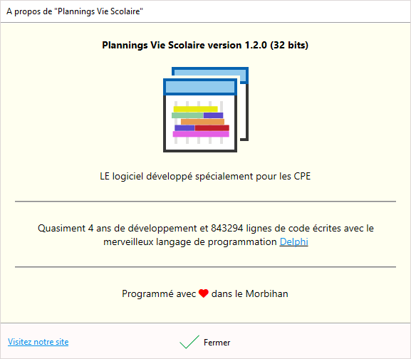 La boîte de dialogue "A propos de" du programme