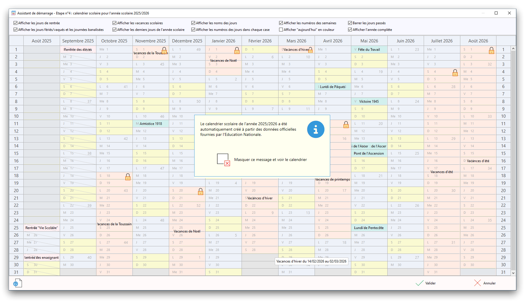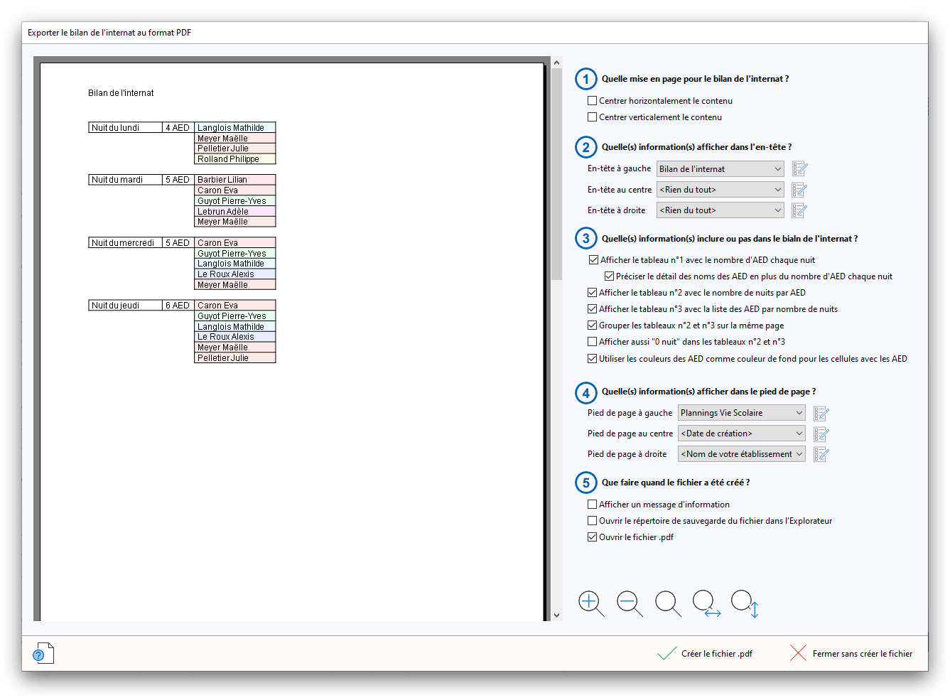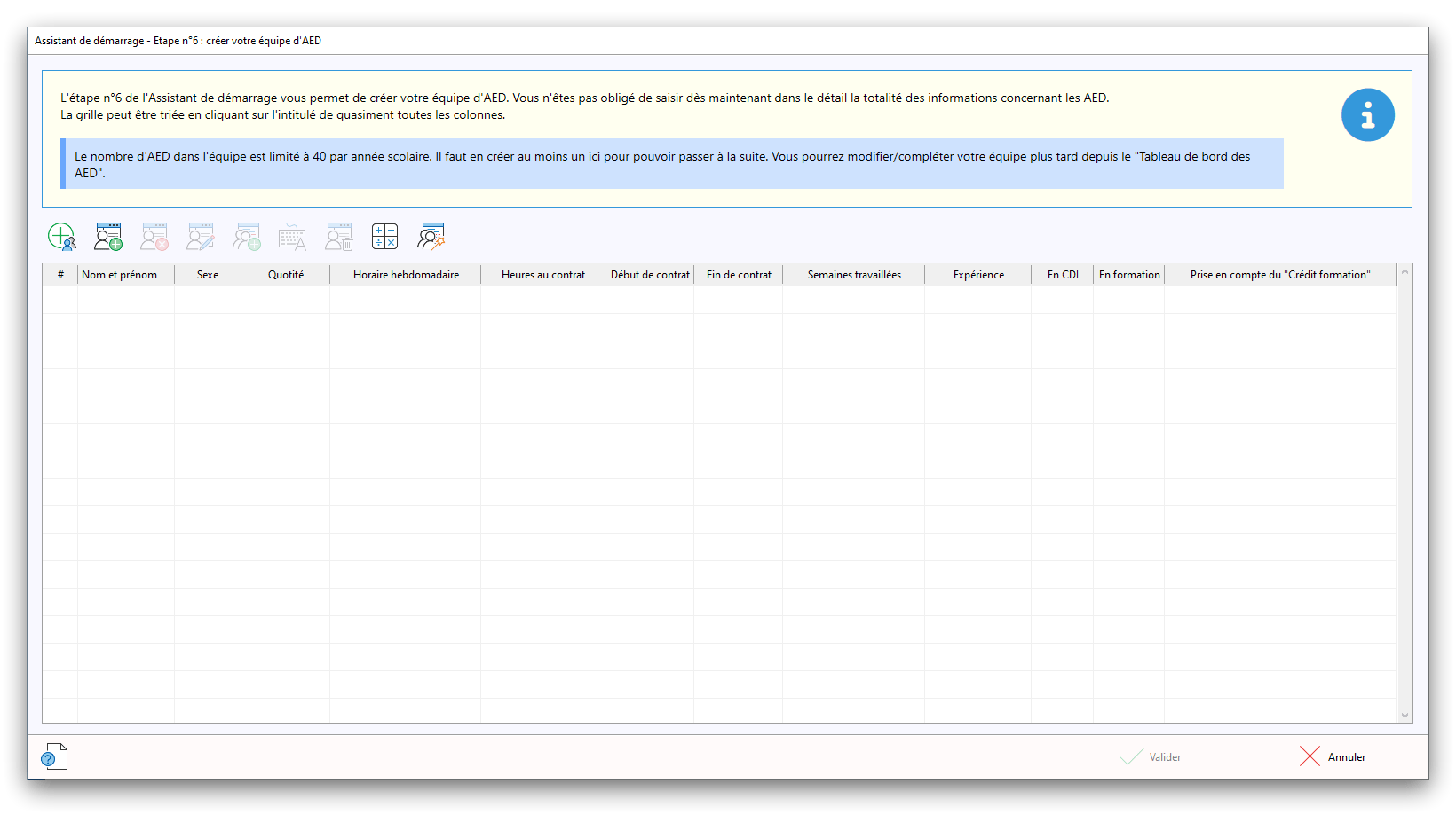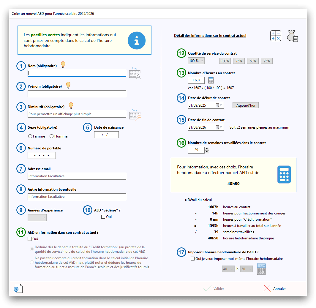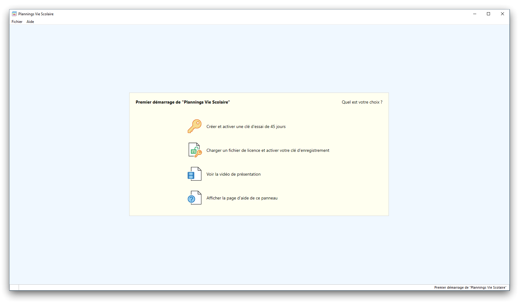 Premier démarrage de « Plannings Vie Scolaire »Créer et activer une clé d’essaiAssistant de démarrageAssistant de démarrage – Etape 1 – Choisir l’année scolaireAssistant de démarrage – Etape 2 – Définir vos plages horaires quotidiennes – Exemple d’organisation hebdomadaireAssistant de démarrage – Etape 3 – Vérifier les paramètres et fixer vos critères de calcul des horairesAssistant de démarrage – Etape 4 – Récupérer le calendrier scolaireAssistant de démarrage – Etape 5 – Créer votre liste de postes « Vie Scolaire »Liste des postes « Vie Scolaire » habituelsAssistant de démarrage – Etape 5 – Créer votre liste de postes « Vie Scolaire » – Liste complétéeAssistant de démarrage – Etape 6 – Créer votre équipe d’AEDAssistant de démarrage – Etape 6 – Créer votre équipe d’AED – Equipe fictiveCréer plusieurs AEDCréer un nouvel AEDAssistant de démarrage terminéOnglet 1 – Planning hebdomadaireUn planning hebdomadaireUn planning hebdomadaire en « Vue AED » – Affichage du panneau du résumé des servicesPlanning hebdomadaire – Menu contextuel sur un AEDPlanning hebdomadaire – Menu contextuel sur un jourPlanning hebdomadaire – Menu contextuel sur une cellule videPlanning hebdomadaire – Menu contextuel sur le panneau du résumé des servicesUn planning hebdomadaire en « Vue AED » – Affichage du nombre d’AED dans la journéeDans un planning hebdomadaire, choisir quel(s) AED afficher – Toute l’équipeDans un planning hebdomadaire, choisir quel(s) AED afficher – Une partie de l’équipeUn planning hebdomadaire en « Vue AED » – Affichage d’une partie de l’équipeUn planning hebdomadaire en « Vue AED » – Affichage d’un seul jourUn planning hebdomadaire en « Vue Poste » – Affichage horizontalUn planning hebdomadaire en « Vue Poste » – Affichage verticalUn planning hebdomadaire en « Vue AED » – Affichage verticalAjouter un nouveau planning hebdomadaireModifier les informations d’un planning hebdomadairePlanning hebdomadaire – Ajouter une ou plusieurs barrettesSimulateur d’horaire hebdomadaire théoriqueCalculateur de « réserve horaire »Voir votre organisation hebdomadaire actuelleOnglet 2 – Le semainier de travail n’est pas encore crééOnglet 2 – Le semainier de travailOnglet 2 – Le semainier de travail avec le panneau du résumé des services détailléLe semainier de travail avec une absenceSemainier de travail – Menu contextuel sur un AEDSemainier de travail – Menu contextuel sur une barrette existanteSemainier de travail – Menu contextuel sur le panneau du résumé des servicesSemainier de travail – Menu contextuel sur une barrette d’absenceSynthèse du temps de travail d’un AED sous forme de graphiqueSynthèse du temps de travail d’un AED sous forme de tableauAjouter un événement exceptionnel – ExempleAjouter une ouverture exceptionnelle – ExempleOnglet 3 – Tableau de bord des AEDTableau de bord des AED – Menu contextuelOnglet 4 – Tableau de bord des postes Vie ScolaireTableau de bord des postes Vie Scolaire – Menu contextuelCréer un poste « Vie Scolaire »Exporter la liste des postes « Vie Scolaire » au format texteExporter la liste des postes « Vie Scolaire » au format PDFExporter la liste des postes Vie Scolaire au format « Plannings Vie Scolaire »Les raccourcis clavier – Plannings hebdomadairesLes raccourcis clavier – Semainier de travailLes raccourcis clavier – Tableau de bord des AEDLes raccourcis clavier – Tableau de bord des postes Vie ScolaireOutils – Copier votre fichier de donnéesOutils – Récupérer un fichier de donnéesOutils – Restaurer un fichier de données sauvegardéCréer la fiche de poste des AED au format PDFExporter un planning hebdomadaire au format PDFExporter le bilan de l’internat au format PDFExporter un rapport d’activité au format PDFConfiguration – Au démarrage du programmeConfiguration – Les plannings hebdomadairesConfiguration – Le semainier de travailConfiguration – Tableau de bord des AEDConfiguration – Tableau de bord des postes « Vie Scolaire »Configuration – Quand on quitte le programmeConfiguration – Autres paramètresConseils et astuces d’utilisationInformations techniquesA propos de « Plannings Vie Scolaire »